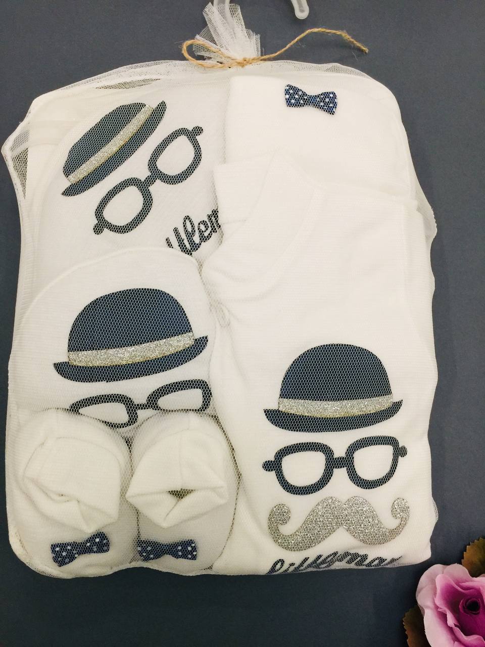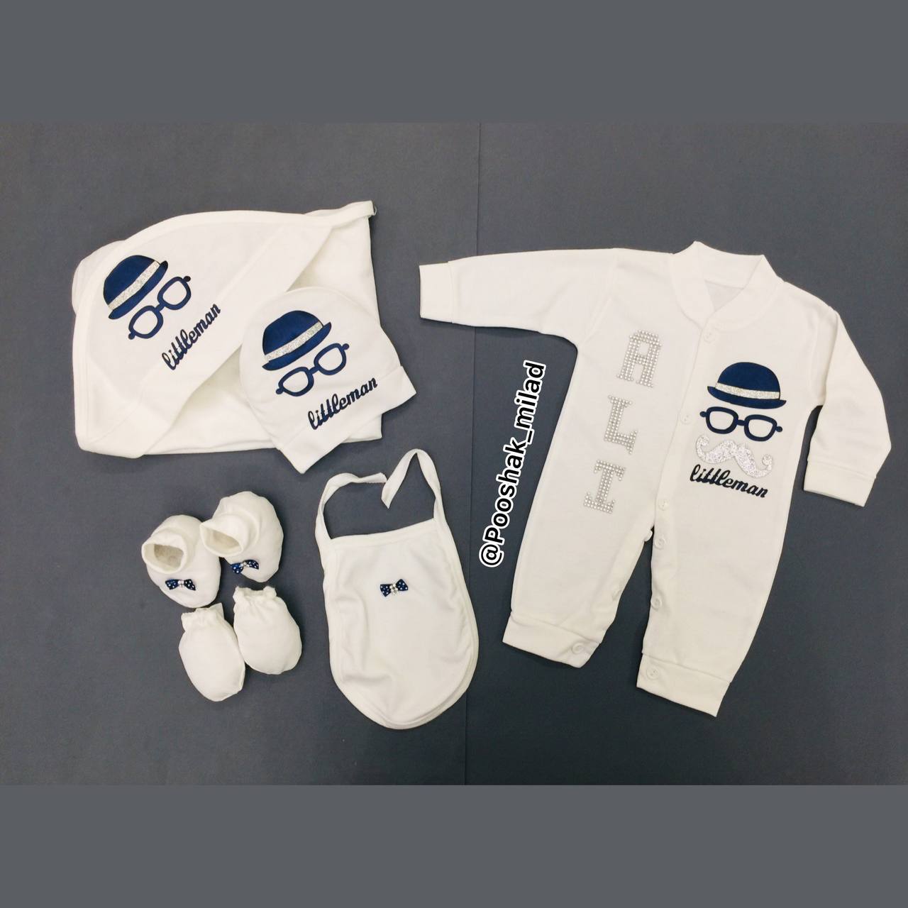 ۷تیکه شامل پتو،پیشبند، سرهمی، دستکش، پاپوش، کلاه، چوب لباسی